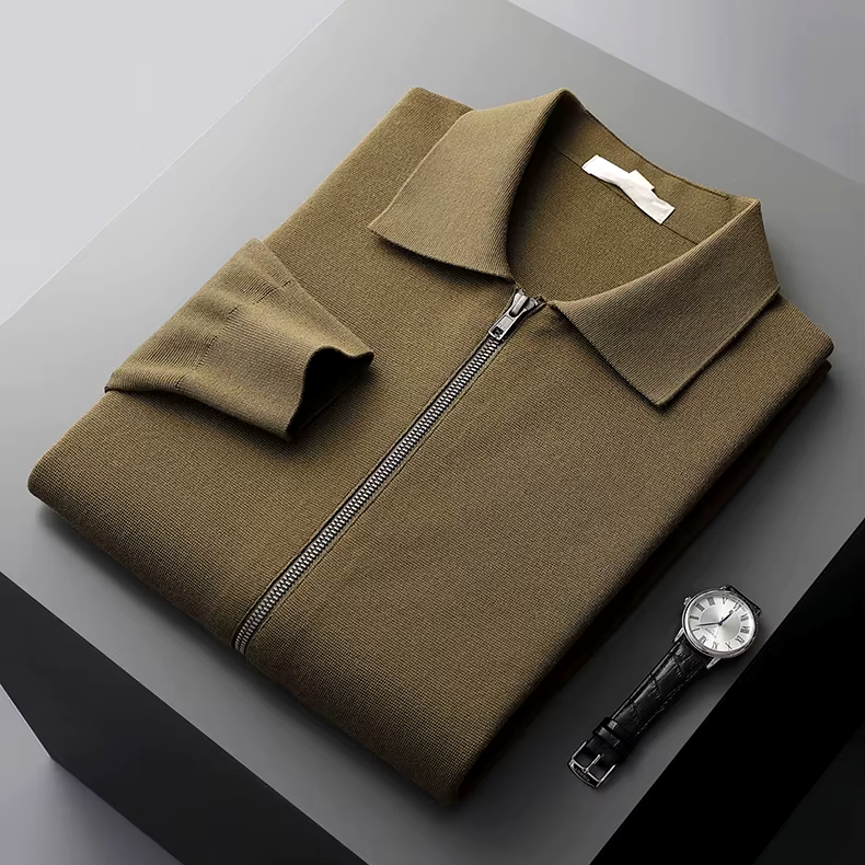 Soft knit wool blend with a warm, cozy feel and a double zipper for adjustable layering. This winter-ready zip sweater pairs a flat collar, ribbed cuffs and hem, and hidden side pockets with a relaxed fit for effortless comfort and refined cold-weather style.