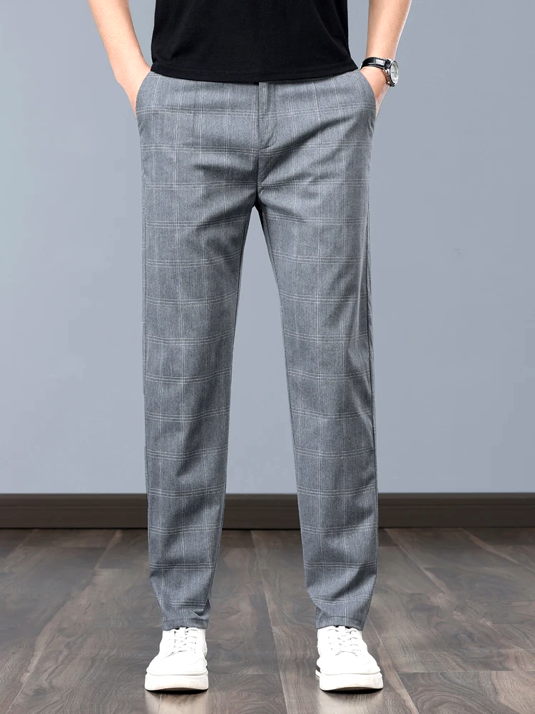 Stretchable for a formal look, these plaid pants breathe easily, with a hidden waist-relaxer expanding up to four inches for all-day comfort. Perfect for work or play, they combine a modern fit with classic charm effortlessly.