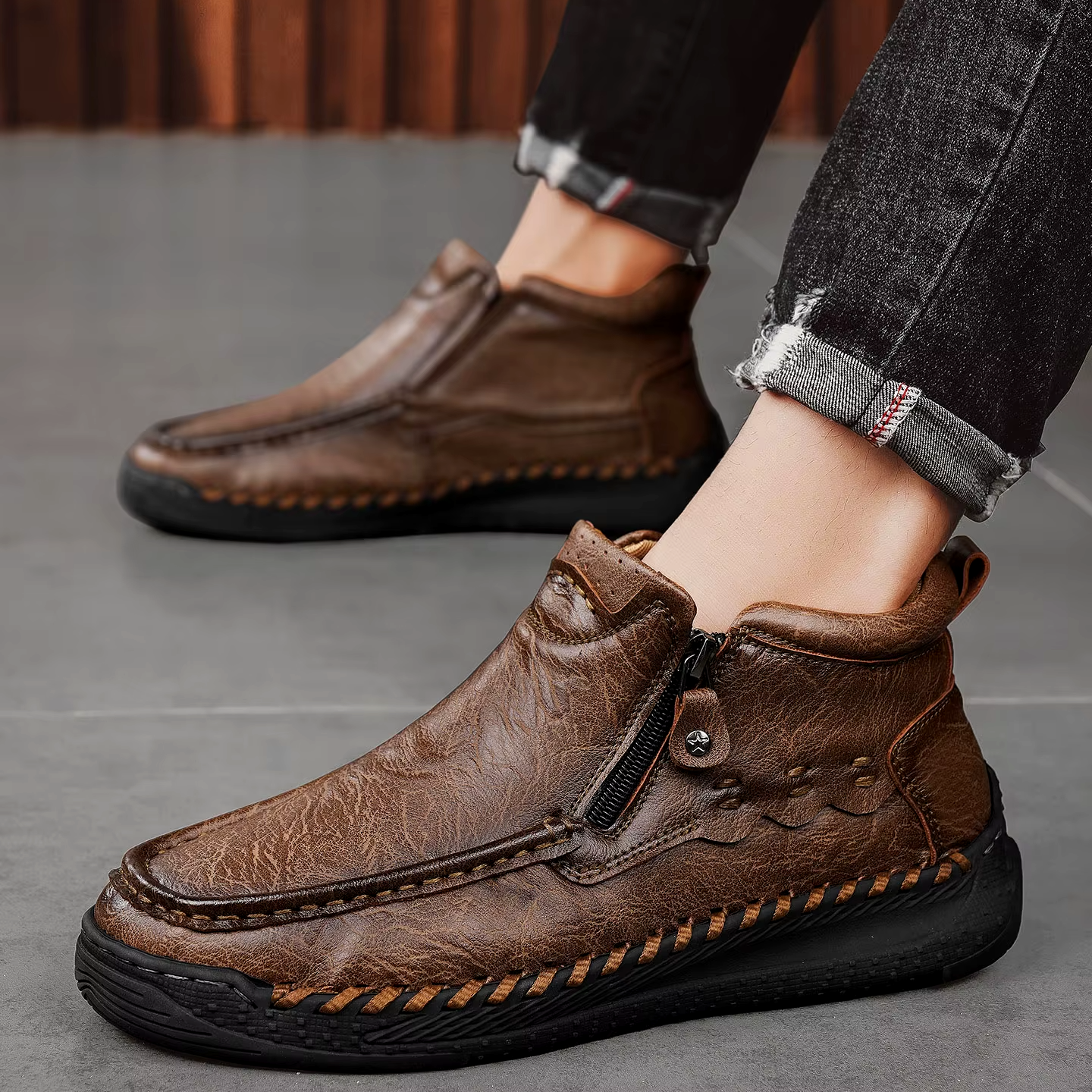 Crafted from supple vegan leather with a worn finish and mid-ankle height, this boot features hand-stitched detailing and a clean side zipper for a timeless, well-made look. A cushioned insole and textured rubber outsole keep you comfortable and steady day in and day out.
